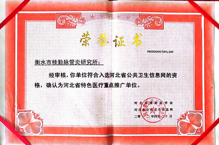 河北衡水桂勤脈管炎研究所,由河北脈管炎專家主任醫(yī)師張桂勤創(chuàng)辦,是一所**研究治療脈管炎、靜脈炎、靜脈血栓、靜脈曲張、糖尿病足、肢體動(dòng)脈硬化閉塞癥、··· |